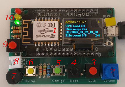 When any of these values is outside a certain defined range for a defined time, the status LEDs (10) will switch from green (ok) to yellow (warning) or red (error). In red mode, the buzzer (7) is giving an alert tone. You can control the volume of the buzzer (2), or mute it completely with the corresponding button (3).
