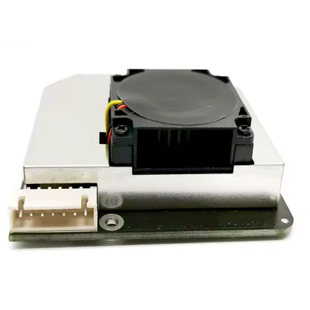 SDS011 is an air quality sensor which measures the concentration of dust particles up to 2.5 micron (pm2.5) and 10 micron (pm10). Pin3 (GND) and pin5 (5V) are to be connected with the 5V power out connector of the sensor board, pin1 (TX) and pin2 (RX) with pin8 and pin9 of the microcontroller.