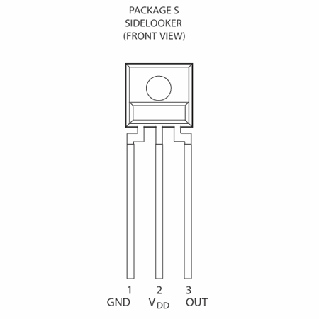 TSL237 is a tiny brightness sensor that allows to measure the night sky quality (SQM), i.e. the sky brightness in mag/arcsec2 (in the range of about 8..22 mag/arcsec2). Pin1 (GND) and pin2 (VDD) are to be connected with the 3.3V power out connector of the sensor board, pin3 (OUT) with pin6 of the microcontroller. If you select a different pin, you have to configure it in the configuration file.
